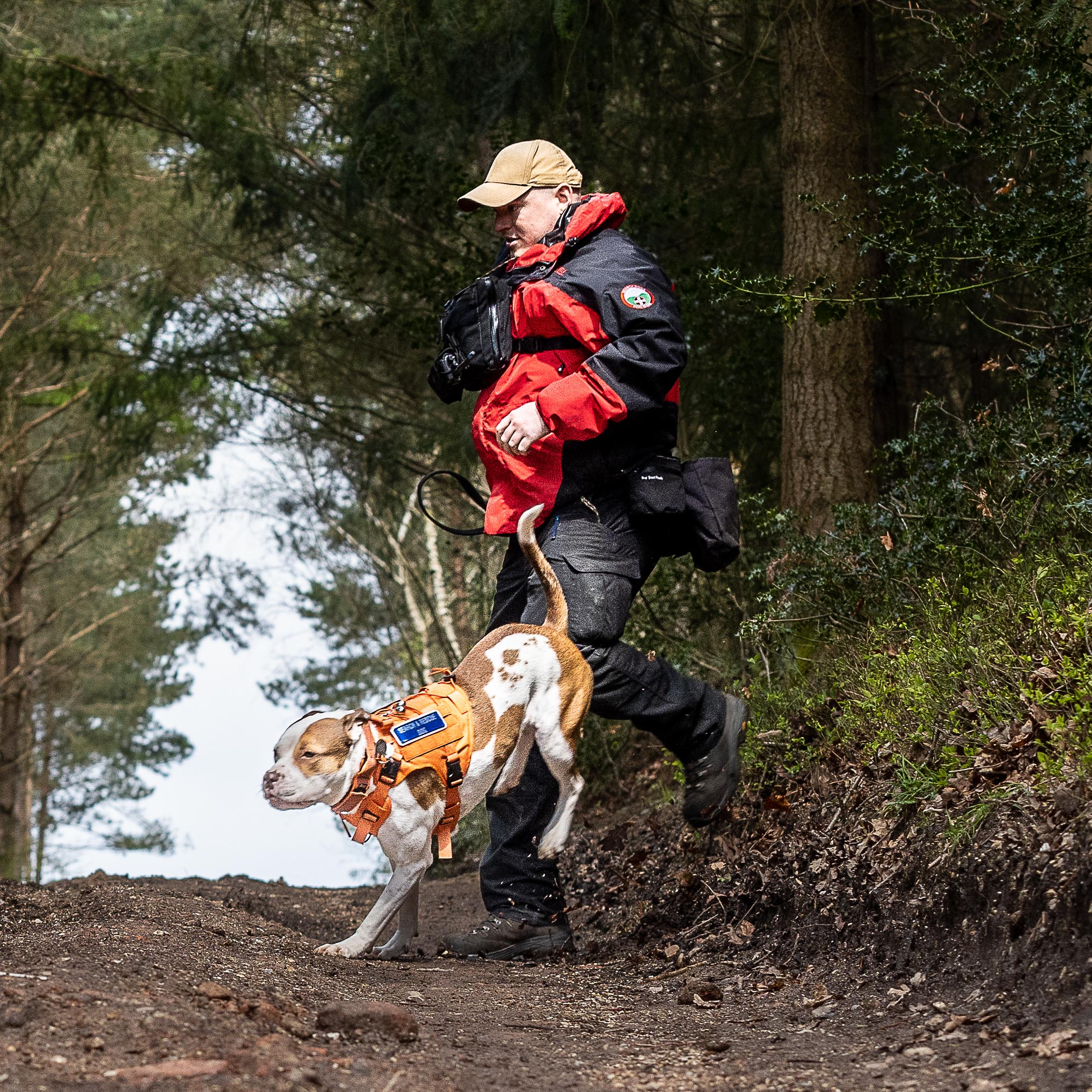 Since then he’s been learning the ropes of how to pick up a scent and follow it back to a misper, to alert Sam when he’s made a find and finally to lead the search team back to the misper. While not something we train our Search Dogs to do Boomer has also learned to give mispers lots of kisses which they all appreciate to different degrees.